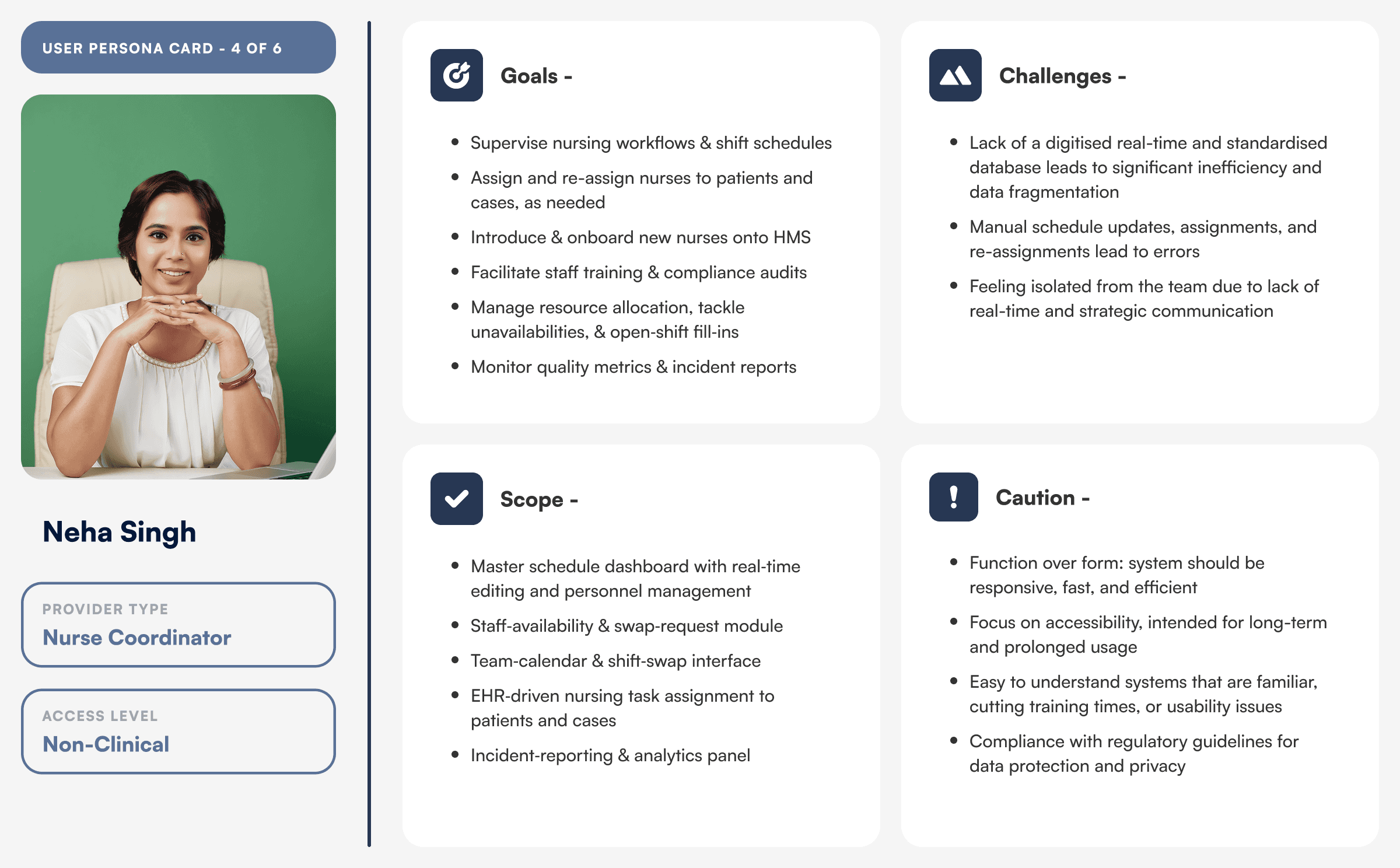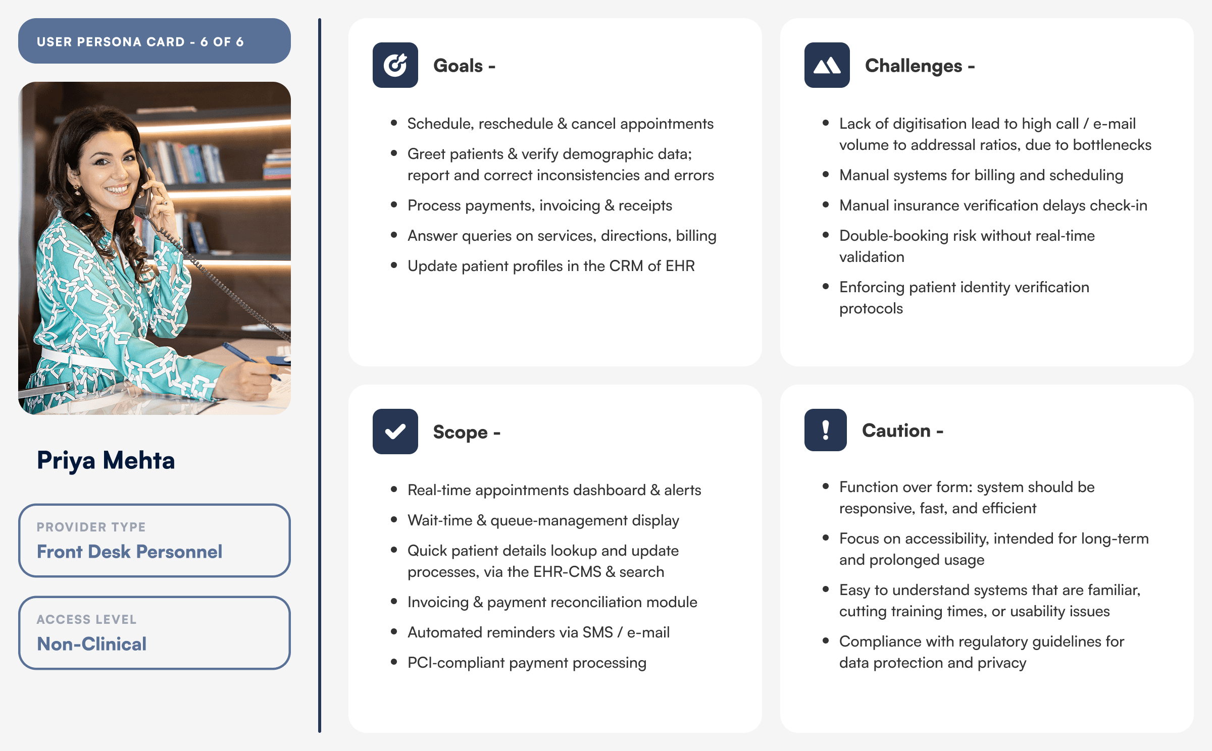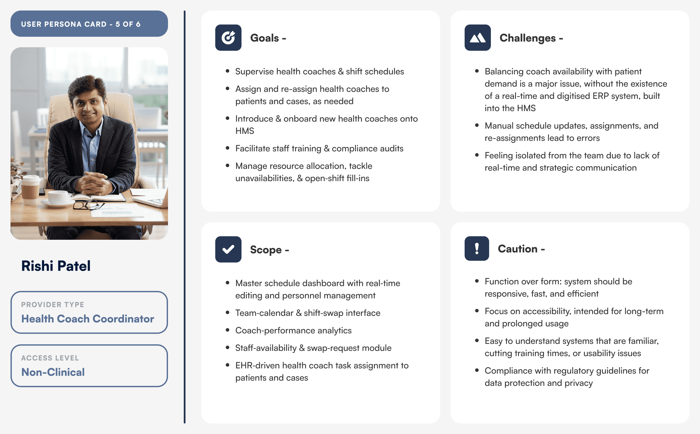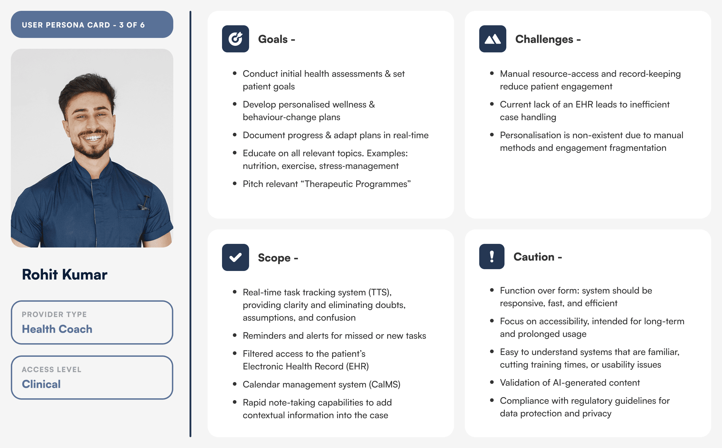 Grouped 50+ research notes into themes (data overload, scheduling friction, report‑handoff gaps) using affinity diagrams to surface priority pain points. Red-route mapping to identify feature prioritisation.