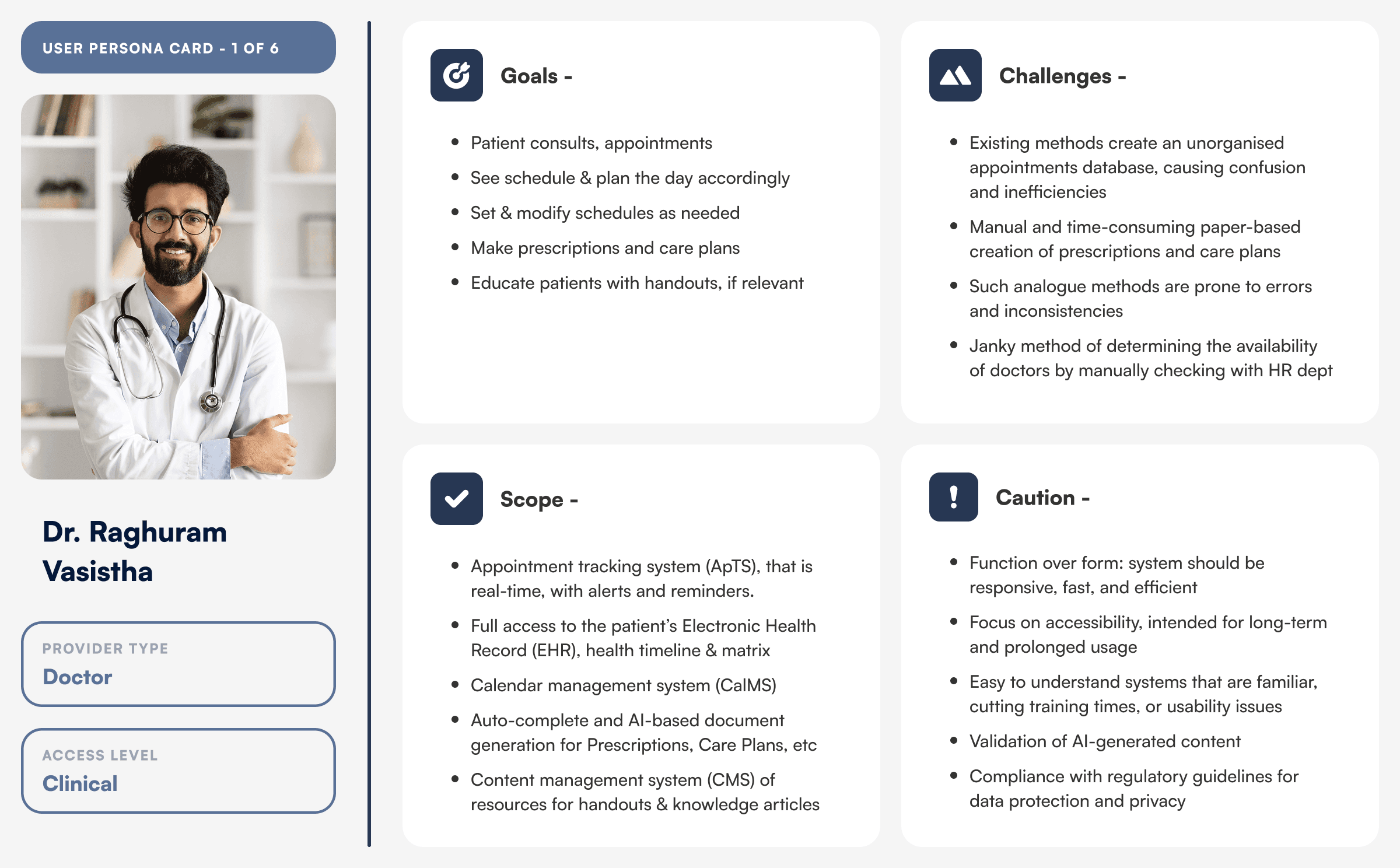 It features cutting-edge capabilities like: real-time appointment management and consultation flow tracking, a dynamic calendar system managing across the availability of healthcare workers, expansive Care Plans and Assessment Databasing that are hyper-personalised to each Patient, AI-powered Prescription Generation Assist, real-time data analytics and tracking, contextual & comprehensive Patient Timeline & Matrix – just to name a few.
